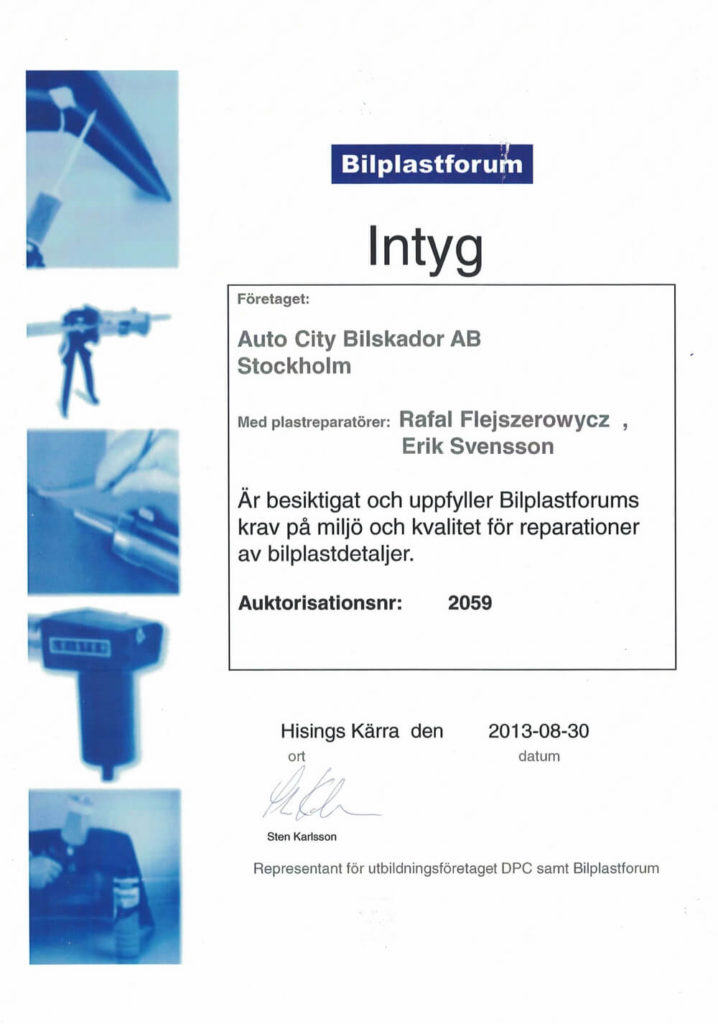 Vi kontrollerar och fotar bilens skador samt gör en skadevärdering, en s.k. Cabas. Värdering med foton sänds sedan till försäkringsbolaget.