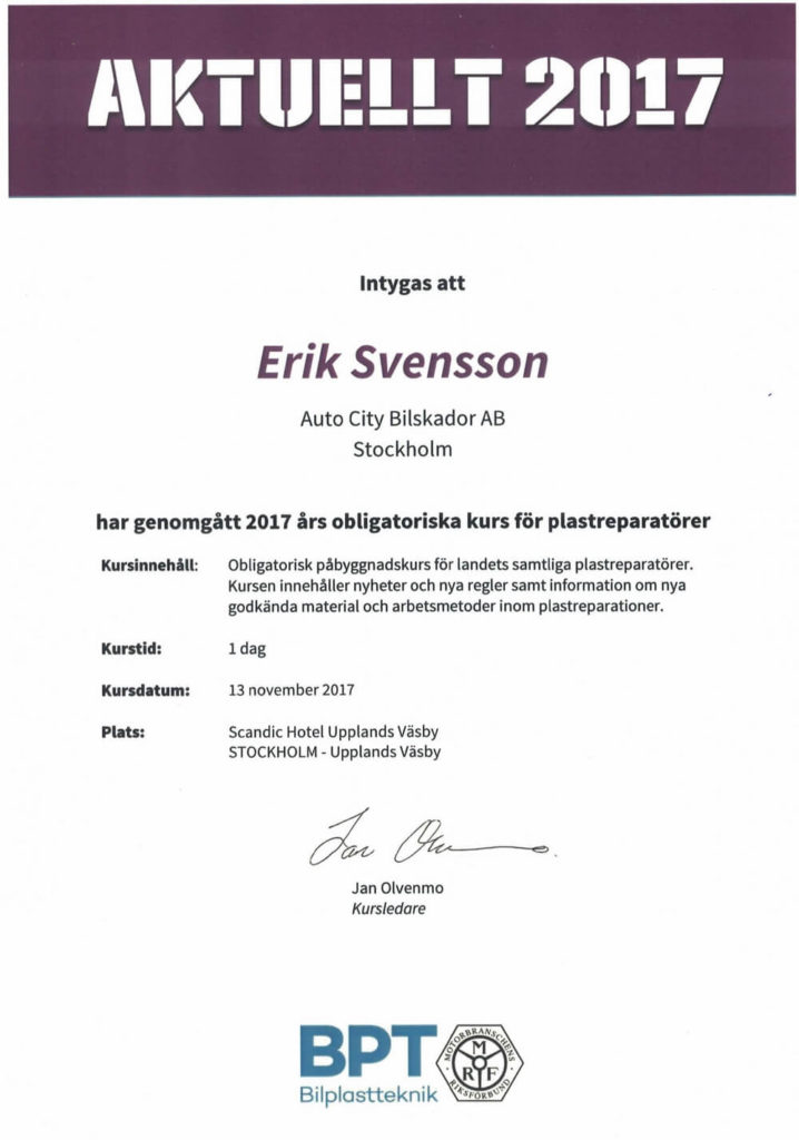 Själva skadebesiktningen tar 10-15 minuter och i samband med besiktningen bokar vi en tid för reparation av bilen.